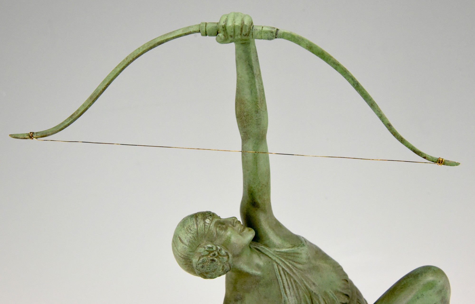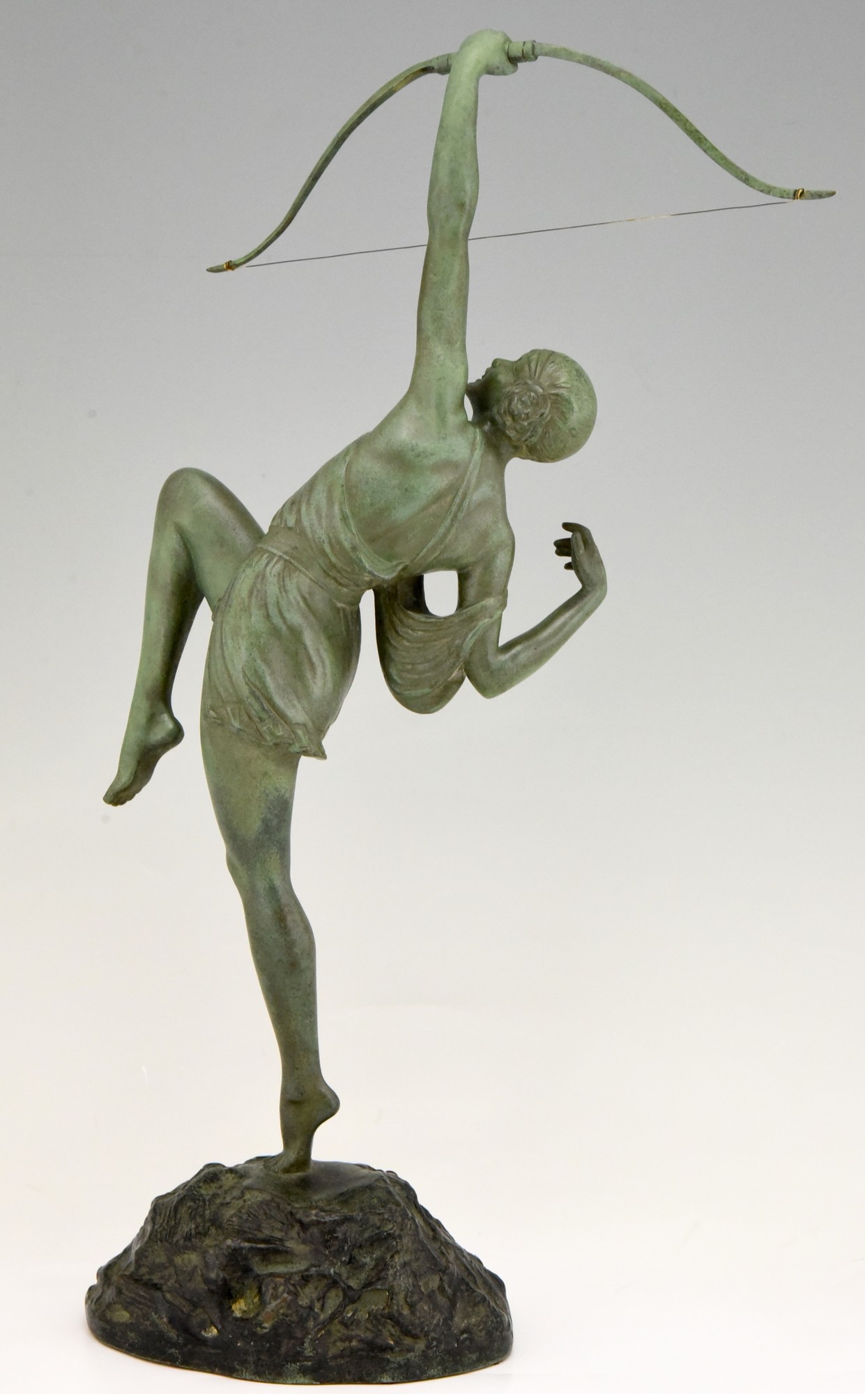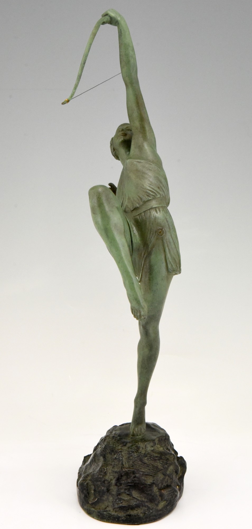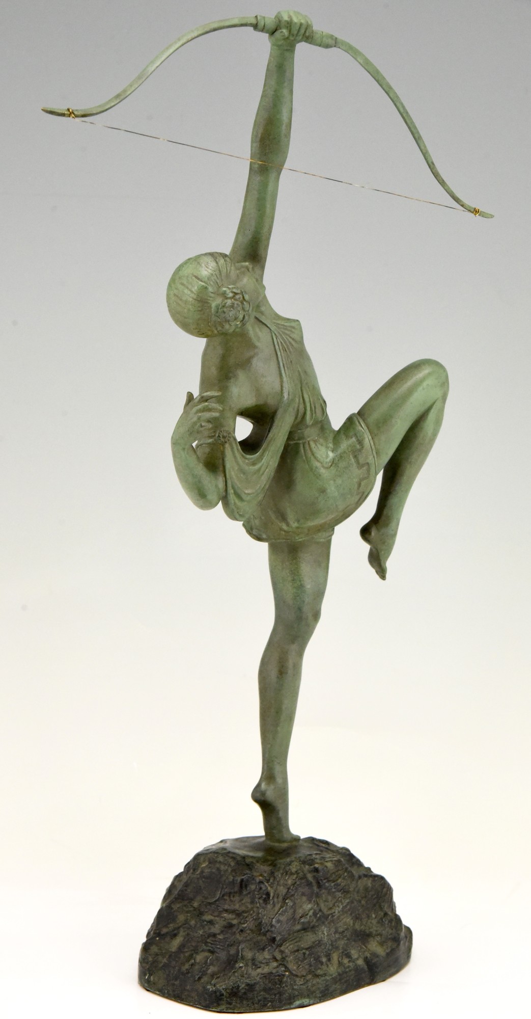 Art Deco bronze of a woman archer, Diana with bow by the famous French artist Pierre Le Faguays, the bronze is signed on the base and bears the Susse Frères foundry seal as well as the founders' signature. France 1925. The sculpture has a green patina.