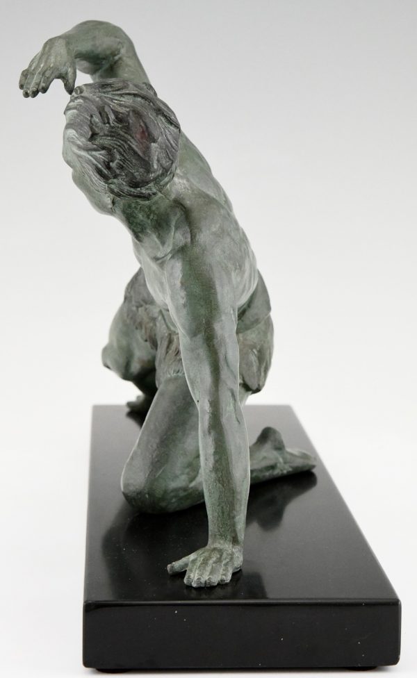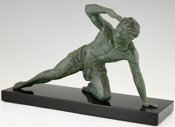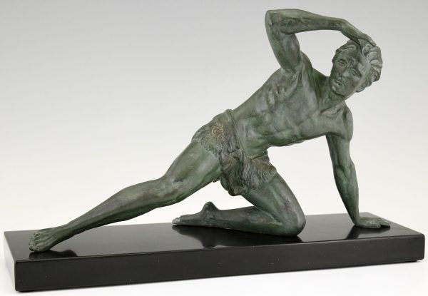 Art Deco sculpture of a man on the lookout by Jean de Roncourt, France ca. 1930.