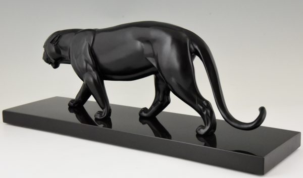 Stylish Art Deco sculpture of a walking black panther by the well know sculptor Irenee Rochard. The sculpture is signed by the artist on the Belgian Black marble base. France ca. 1930.