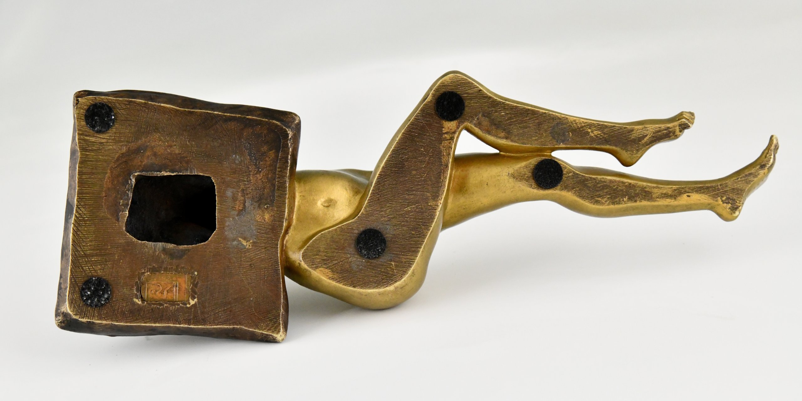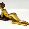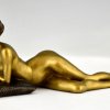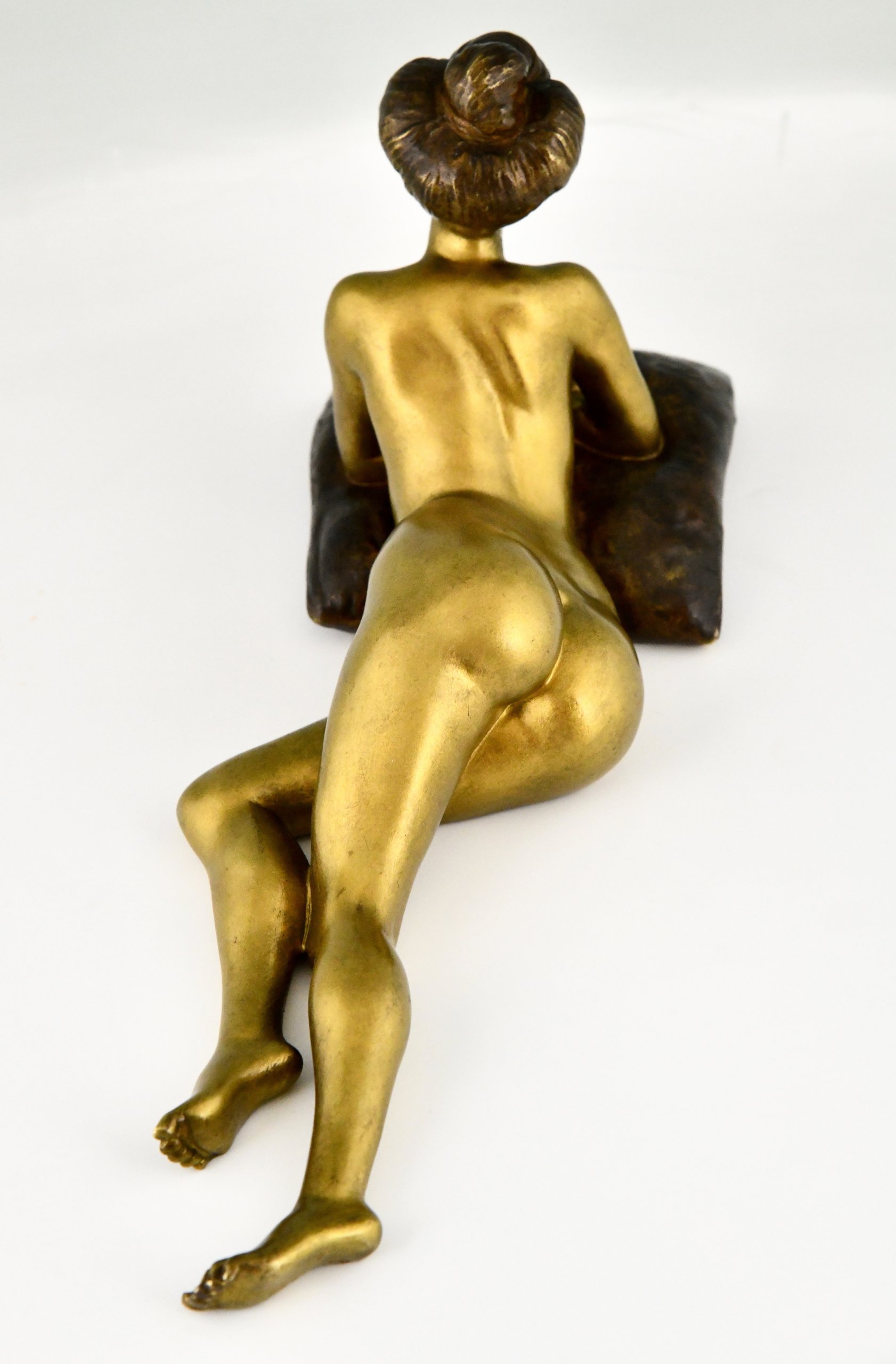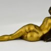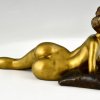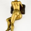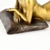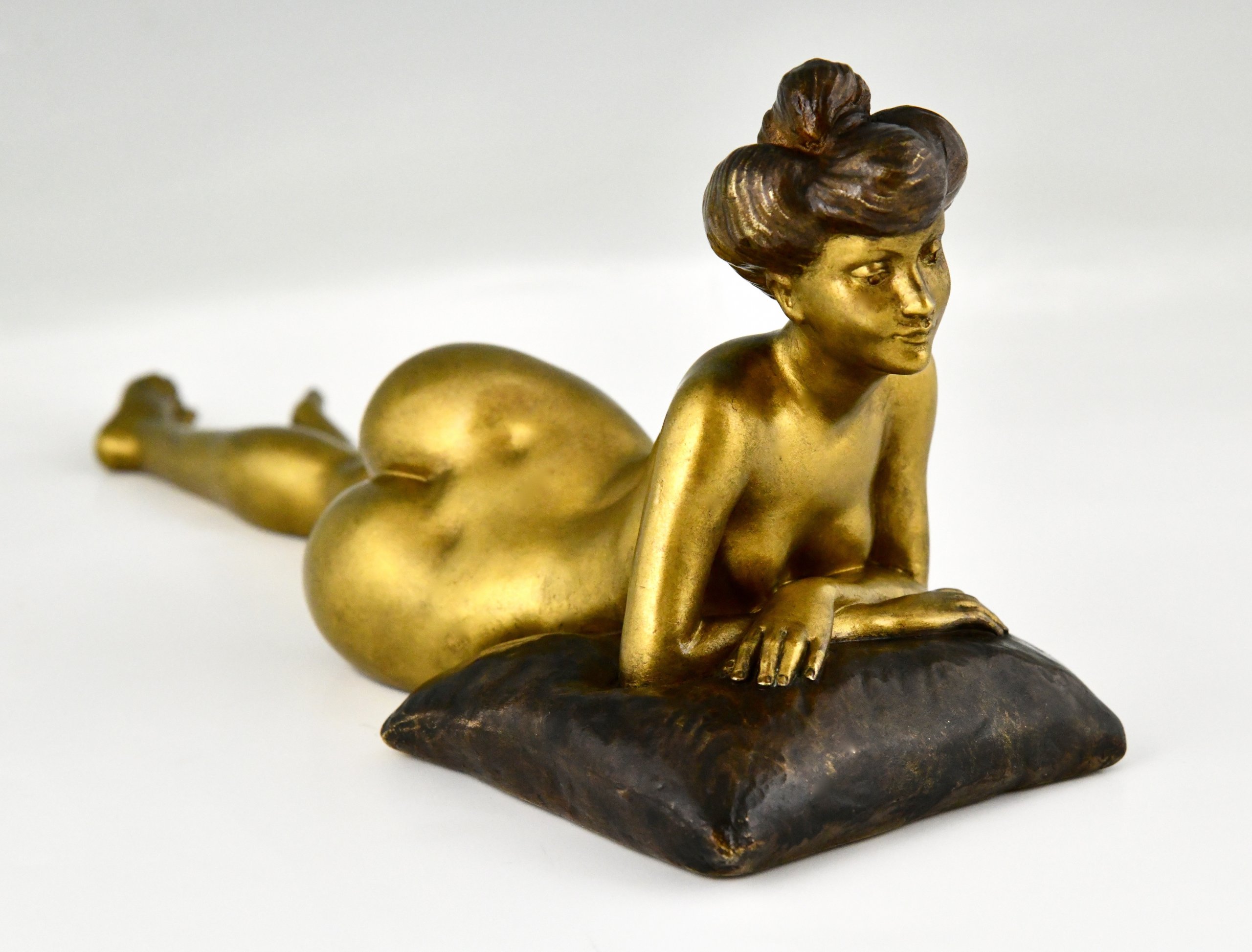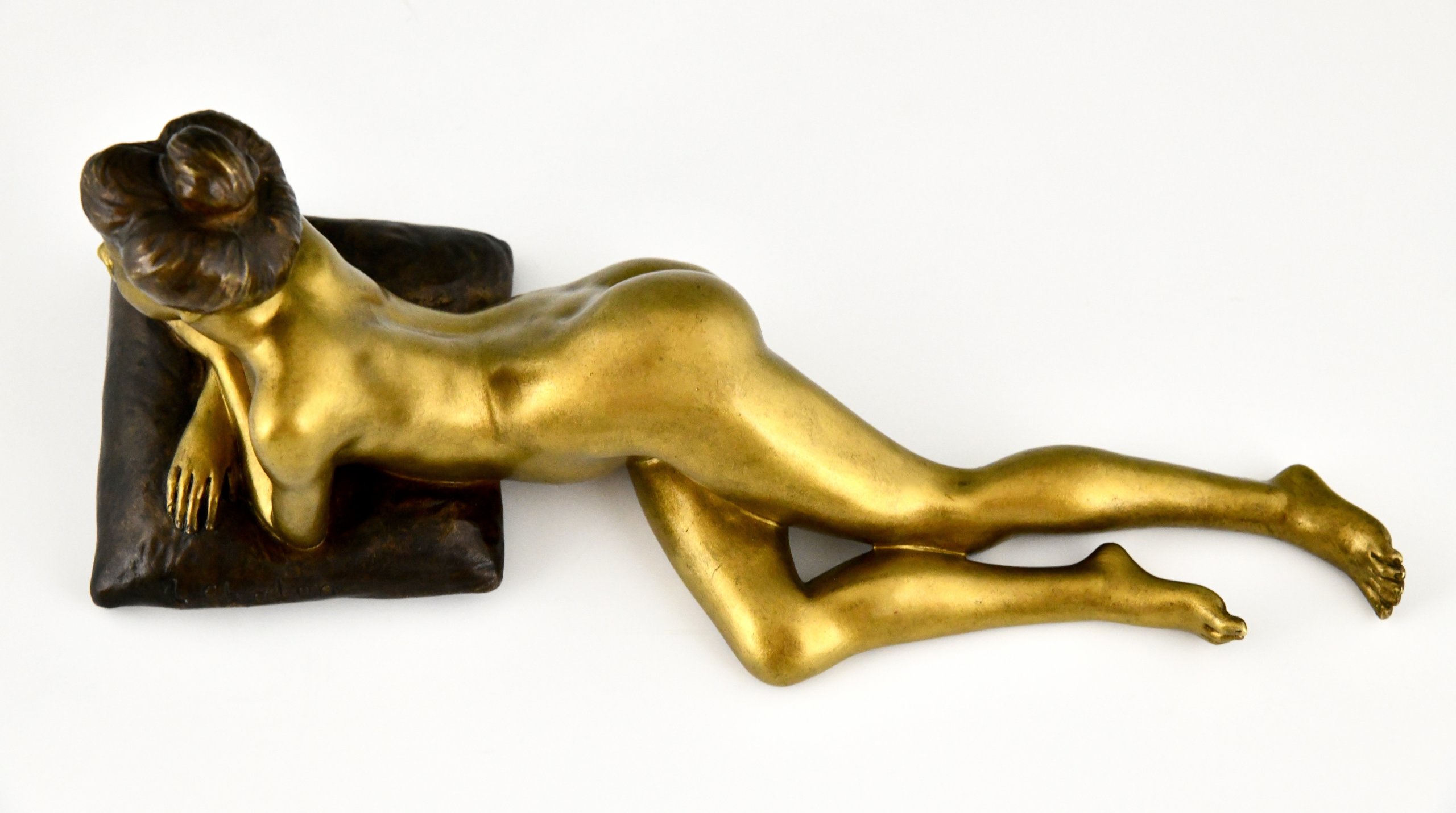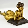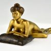 Art Nouveau erotische bronzen sculptuur liggend naakt op een kussen