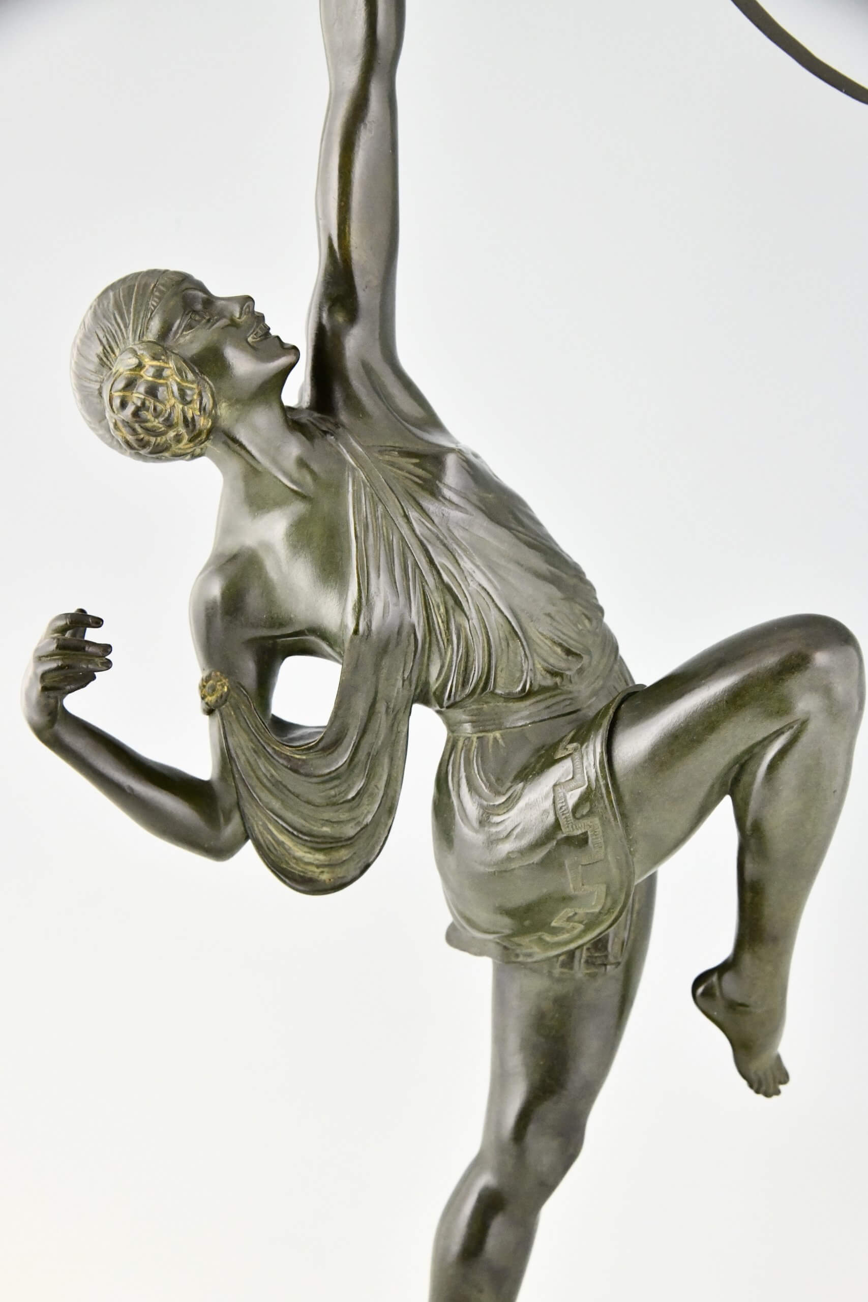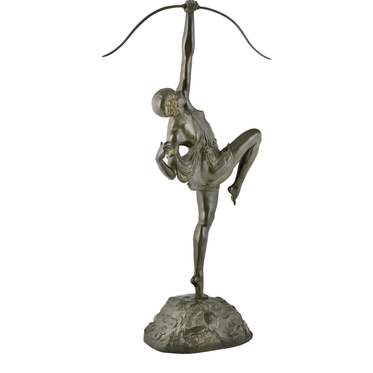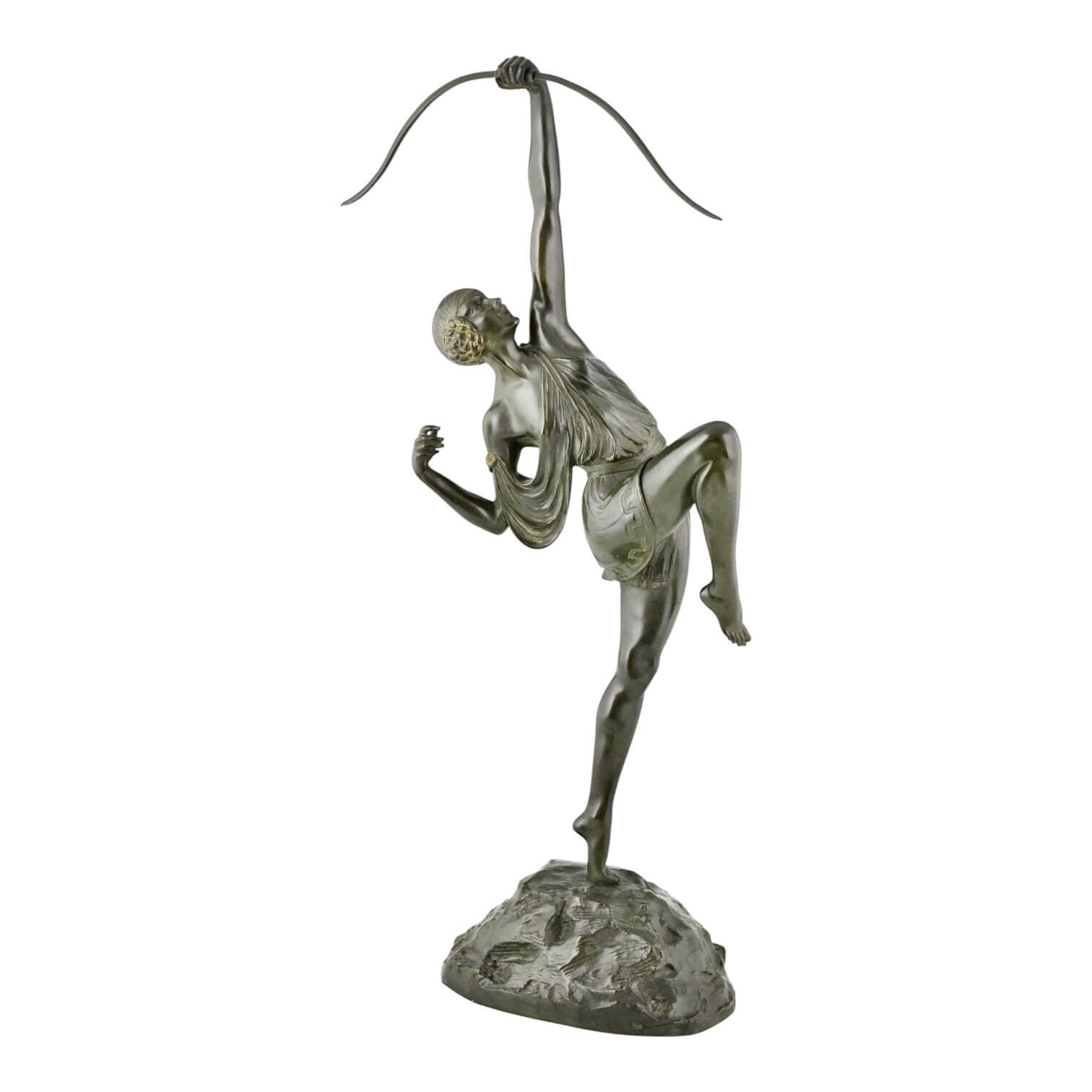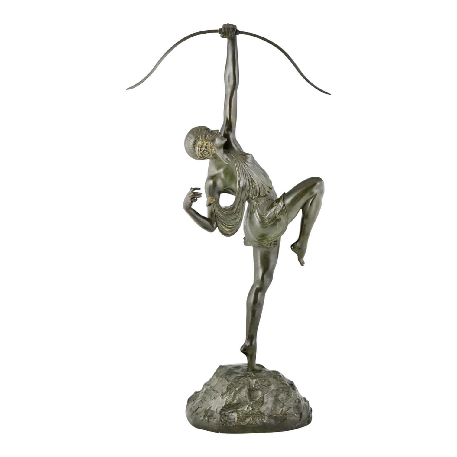 Diana met boog Art Deco bronzen sculptuur van Pierre Le Faguays.