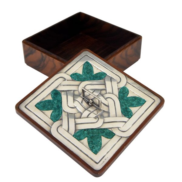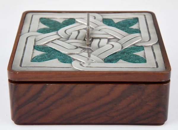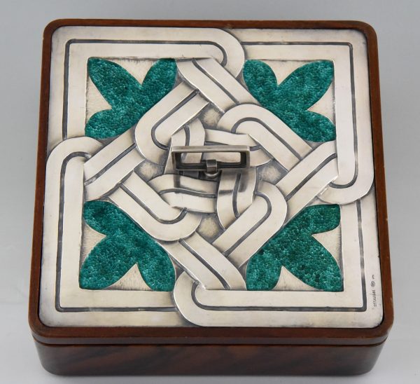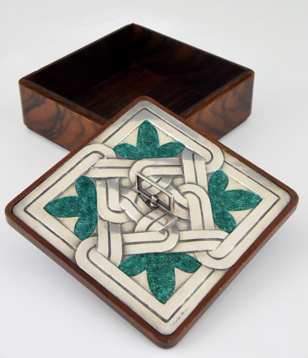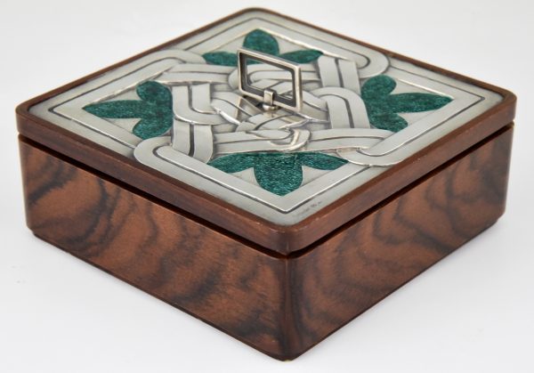 Fine Mid Century Modern box in enamelled Sterling silver and wood by the Italian artist Ottaviani ca. 1960. Signed and with hallmark.