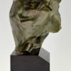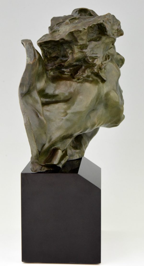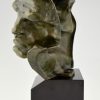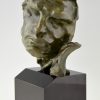 Frans Art Deco bronzen beeld mannen hoofd Le Rhone