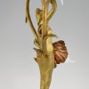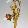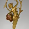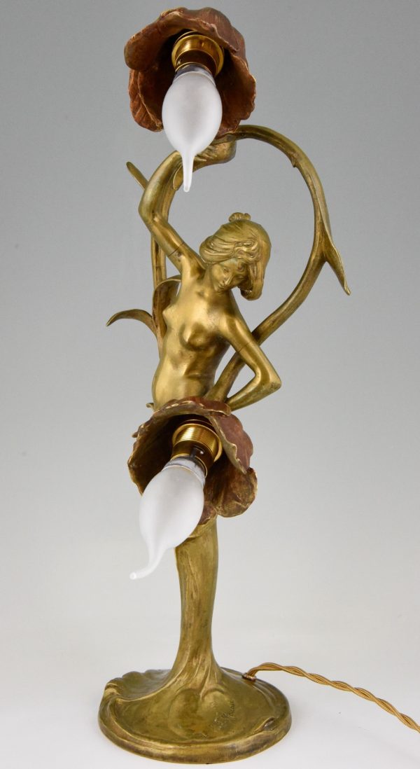 Jugendstil lamp in brons naakte vrouw met bloemen