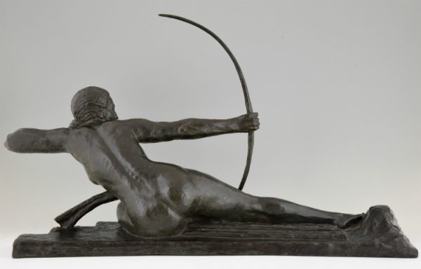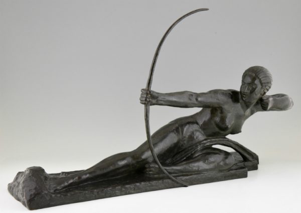 Penthesilea Art Deco bronzen beeld Diana met boog