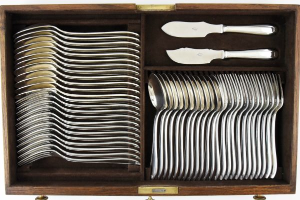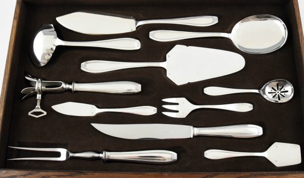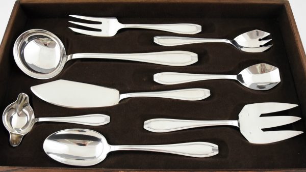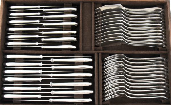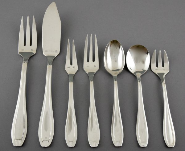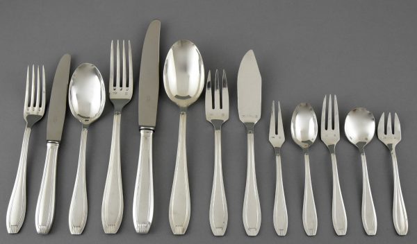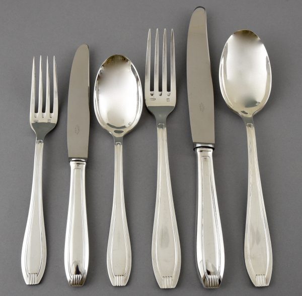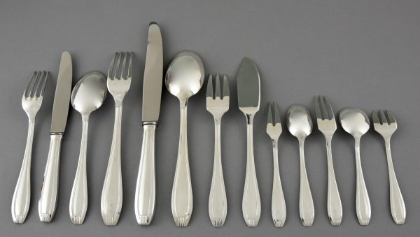 A complete set of art deco silverware for 12 persons.