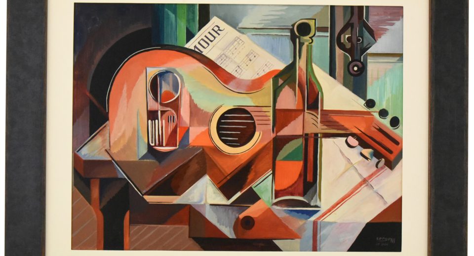 Art Deco bronze sculpture cubist dancers Tango with Pierrot and Colombine by Thomas Cartier. The bronze has a silver